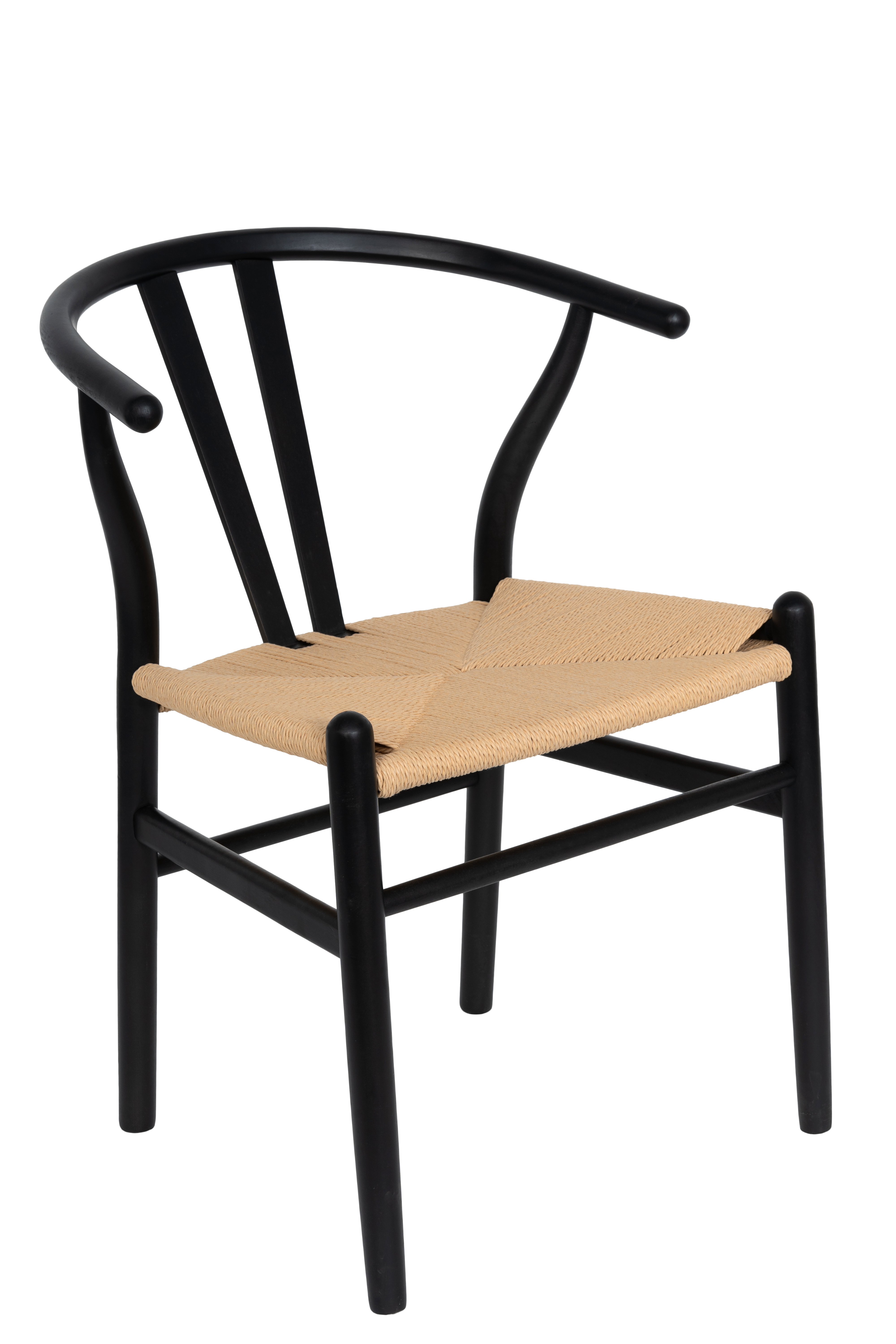 De fyra Brandon karmstolarna kompletterar bordet med sitt tidlösa formspråk och gedigna materialval. Stolarna är tillverkade i FSC-certifierat svartmålat bokträ och har en flätad sits av slitstarkt papperssnöre som ger en naturlig och varm kontrast till den svarta ramen. Kombinationen av material och färg skapar en harmonisk balans mellan modern elegans och traditionellt hantverk.