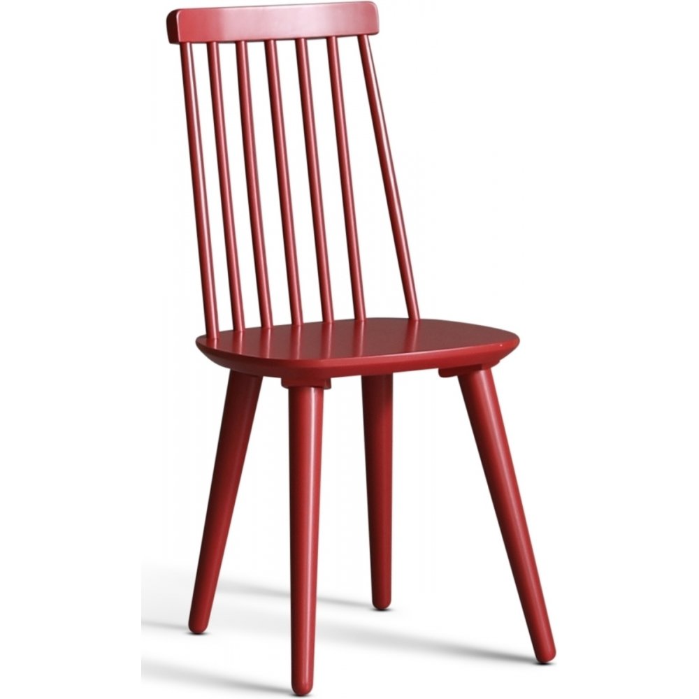 Dalsland matgrupp med stort och bra matbord med toppskiva i oljad ek och vitlackat underrede. Dalsland pinnstolar i en läcker röd lack (RAL3003)