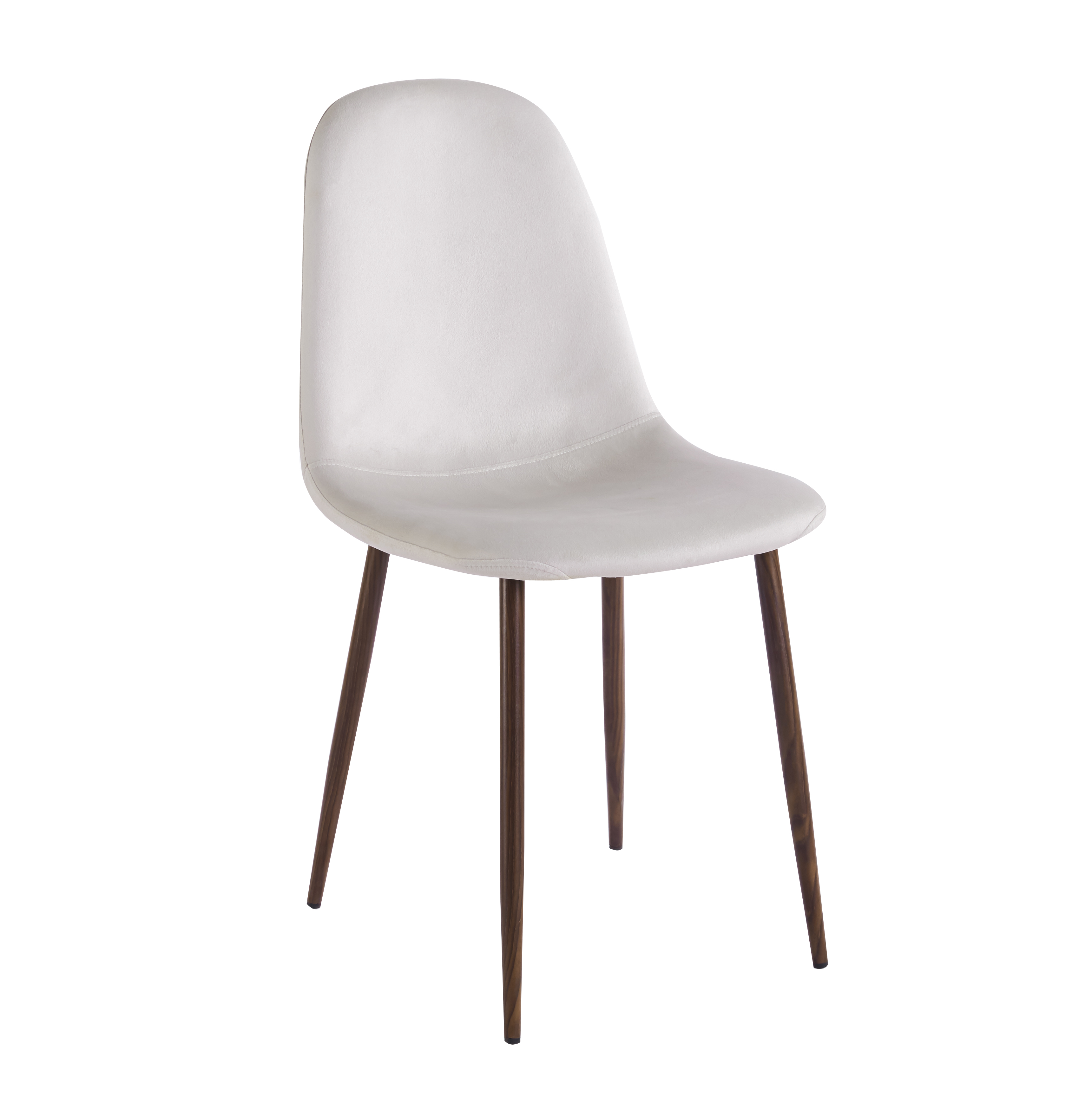 De fyra Alfred matstolarna kompletterar bordet med sin mjuka och bekväma form. Klädda i beige sammet och med ben i mörk valnötsfinish erbjuder de både komfort och visuell harmoni med bordets träton. Kombinationen av de rundade linjerna och det varma materialmötet gör gruppen till ett naturligt blickfång i köket eller matsalen.