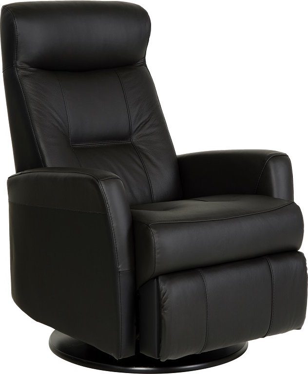 Frans reclinerfåtölj är en mycket påkostad och exklusiv fåtölj i ett slitstarkt svart äkta läder med PVC på sidorna. Gung och snurrfunktion. Fällbar i både rygg och den inbyggda fotdelen. Tiltfunktion och resfunktion framåt gör det lättare att resa sig från fåtöljen.