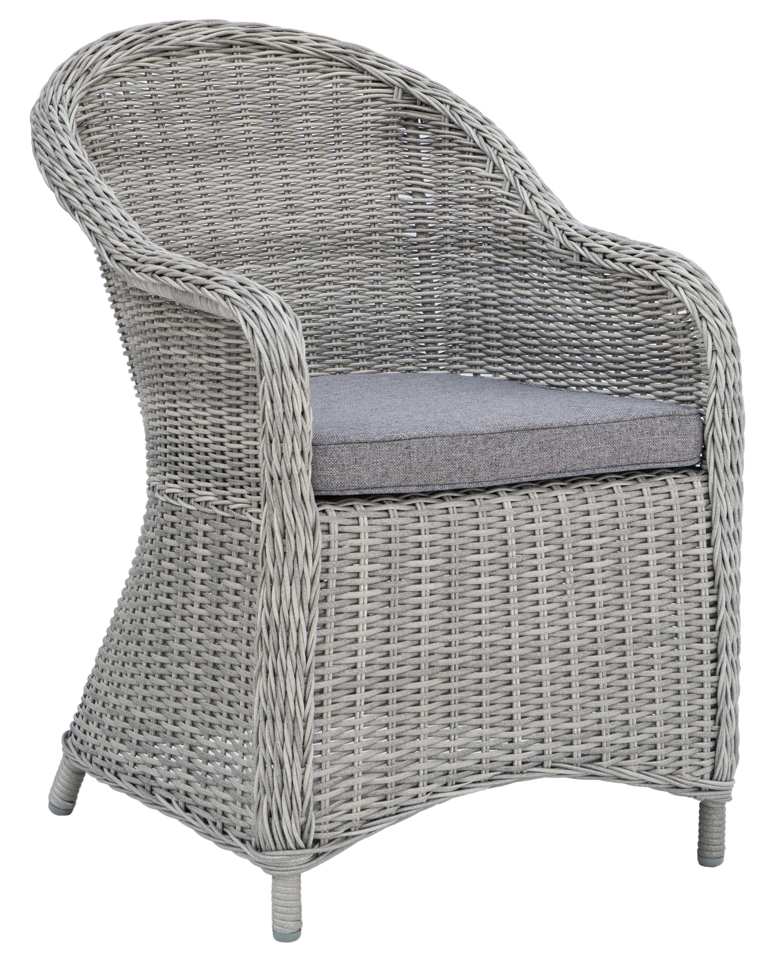 Matgrupp Mercury är ett rejält utemöblemang för din uteplats eller ditt uterum som ger en trevlig ombonad känsla i New England stil. Runt det väl tilltagna Oxford bordet på 220 cm får du plats med de 6 stycken inkluderade karmstolarna. Dessa matchar det grålaserade furubordet snyggt med sin cementgrå konstrotting och mörkgrå dyna, vilka skapar en helhet som är svåröverträffad. Fåtöljens välvda ryggstöd ger ett skönt stöd för ryggen och den vadderade sittdynan ger en bekväm sittning för avkopplande stunder och långa middagar. Sittdynan är i mörkgrå polyester och den halvrunda konstrottingen är färgad i cementgrå uppbyggt på en stabil aluminiumstomme.