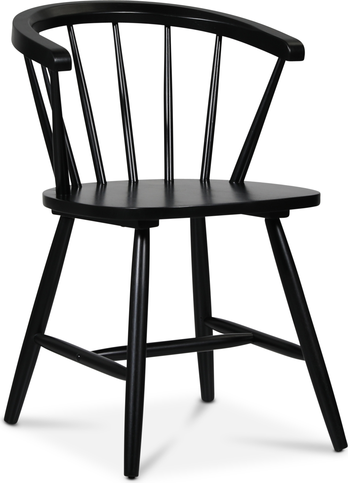 Karmstolar Fårö, en svartlackad klassisk pinnstol i välkänd design. Fårö står för genuint hantverk med hög kvalitet på tillverkning och val av material.