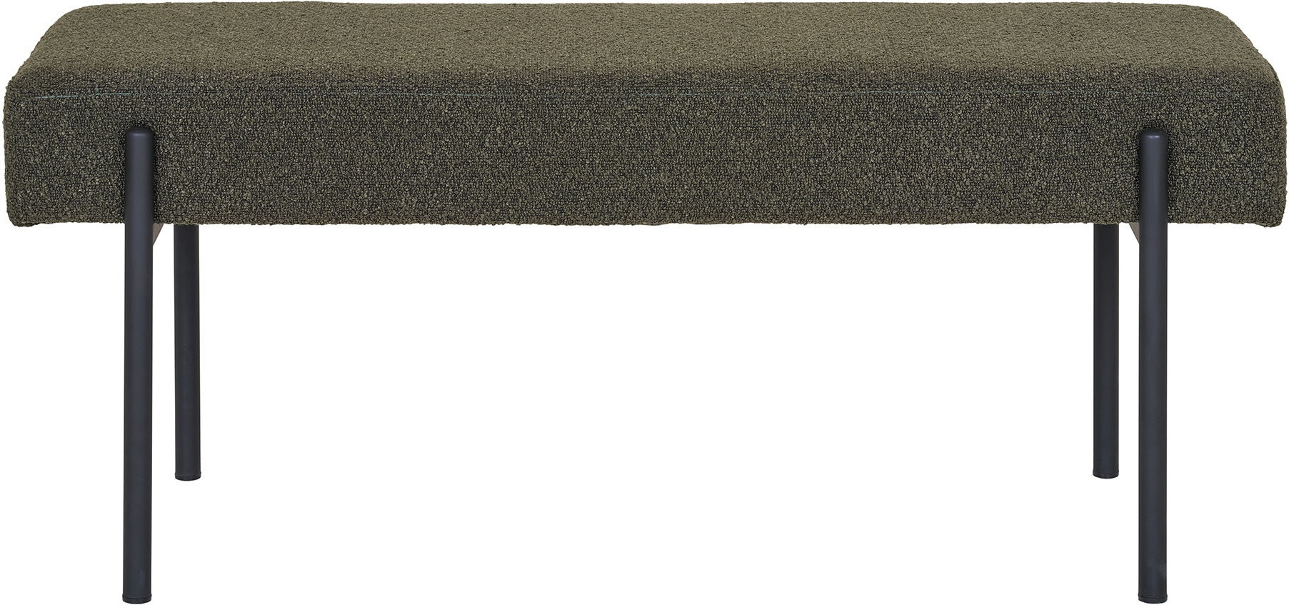 Sittbänk med klädsel av bouclétyg och ben av stål. Levereras omonterad.