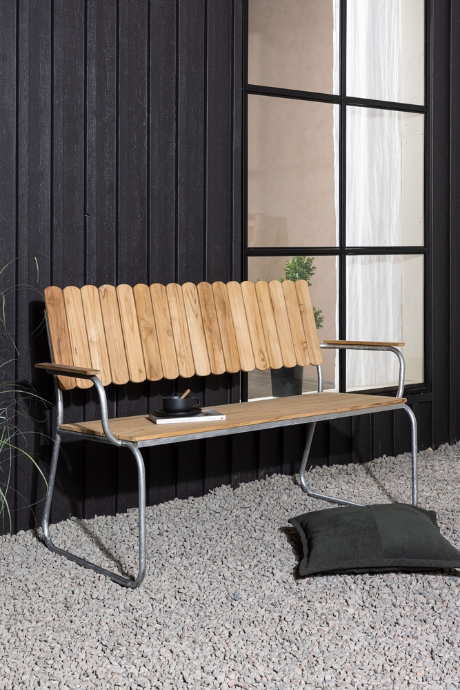 Möllan är en exklusiv serie i skandinavisk klassisk design. Utegruppen är tillverkad i galvaniserat stål med massivt oljat teakträ. Detta gör utegruppen väderbeständig och tålig för att klara uteplatsens miljö.