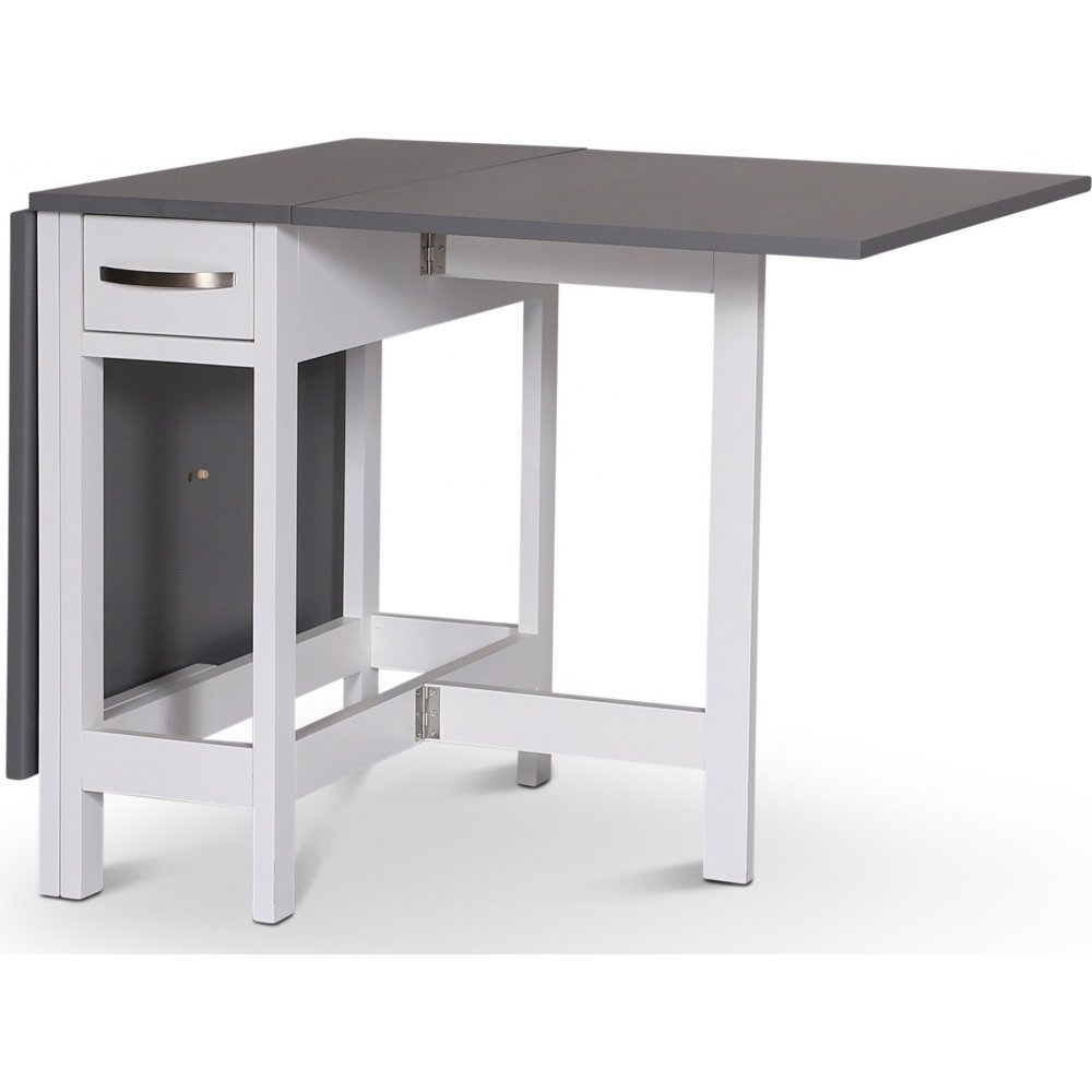 Fårö matgrupp i klassiskt utförande. Fårö klaffbord med 4 st matchande Crocket matstolar med vita ben och rygg / sits i grått tyg.
