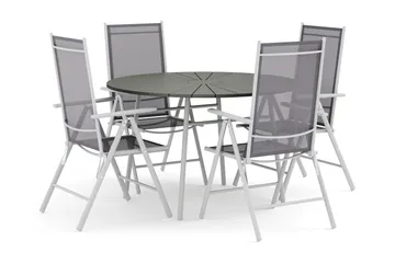 Thor utomhus rund matgrupp 140 cm med 4 Sanna positionsstolar, Svart