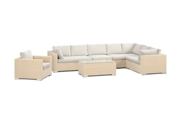 Bahamas utomhus U-soffa 8-sits vändbar divan med öppet avslut och bord, Beige